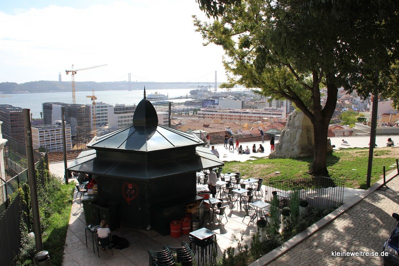 Am Miradouro Santa Catarina ist es einfach nur entspannt, am Kiosk kann man sich etwas zu trinken kaufen und dann einfach in der Sonne sitzen und über die Dächer schauen. Großartig.