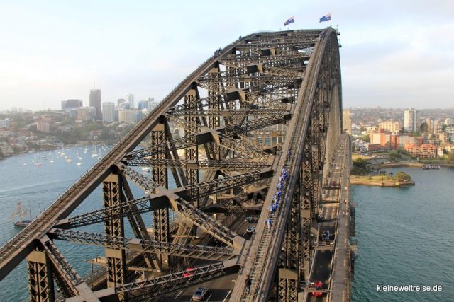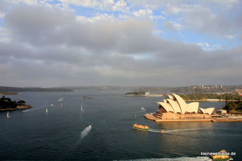 Der Blick von dem Sydney Harbour Bridge ist eine der schönsten, die ich je genossen habe. Der natürliche Hafen, das Opernhaus, die vielen Schiffe und Segelboote am besten bei schönem Wetter – wow. Es heißt sogar, der (sündhaft teure) Bridgeclimb sei es wert. Die preiswerte Variante ist die Aussichtsplattform auf dem südöstlichen Pfeiler. Egal wie, die Aussicht ist einfach wow.