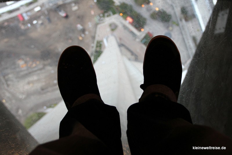 Er war einer der ersten Aussichtsplattformen mit Glasboden, der einem so ein schön mulmiges Gefühl beim hinunterschauen gibt. Heute ist der leider zum großen Teil mit Teppich abgedeckt – denn was man nicht sieht, ist kein Problem. Überhaupt ist Toronto eine tolle Stadt, der CN-Tower ist also an dieser Stelle Stellvertreter, blickt man von ihm aus doch über den Ontario-See, Toronto Islands und die Stadt.