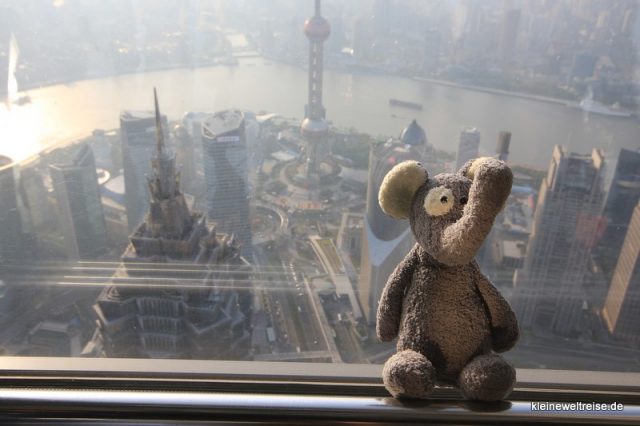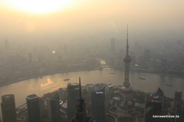 Das Tolle an der Aussichtsplattform ist die Sicht auf das moderne Zentrum von Shanghai zu seinen Füßen mit Jin Mao Tower oder Oriental Pearl. Das Panorama inmitten einer der modernsten Skylines der Welt. Übrigens, auch vom Klo aus muss man auf diesen Anblick nicht verzichten.