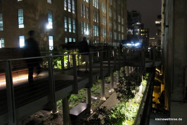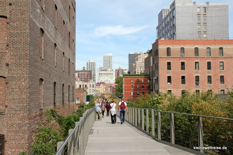 Früher war hier eine Eisenbahnlinie, über die die Schlachthöfe mit Fleisch versorgt wurden. Das Industrielle Erbe ist jetzt bepflanzt und zu einem großartigen Park geworden. Wie eine grüne Schlange zieht sich die High Line durch die Häuser des Meat Packing Districts und durch Chelsea.