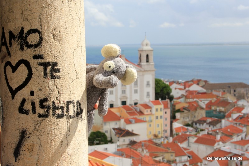Der Miradouro Santa Luzia ist der bekannteste und auch der schönste Aussichtspunkt in Lissabon, gut angebunden an die Touristenpfade hinauf zum Castelo São Jorge. Richtig schön sind die vielen Fliesen, auch Azulejos genannt (in diesem Namen steckt übrigens die Farbe Azul) mit denen hier die Wände und Mauern gestaltet sind.