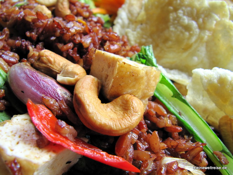 In Ubud gibt es einen kleinen Stadtpark. Naja, genau genommen ist es ein kleines Stück gut ausgebauter Wald, in dem sich sehr viele Affen rumtreiben. Und gegen einen kleinen Eintritt kann der geneigte Besucher sie besichtigen. Und ganz besonders Mutige kaufen sich ein paar Bananen am Eingang. Das braucht aber wirklich viel Mut, weil die Affen die Bananen riechen, egal wie gut man sie...