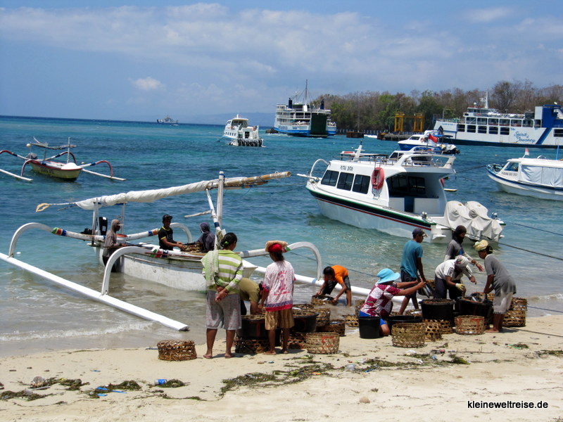 Wir sind die Ostküste ein wenig weiter hoch gefahren nach Padang Bai. Hier ist ein Hafen und ein bisschen Strand. Unter anderem die bekannte Blaue Lagune. Der Grund für ihre Bekanntheit: Der Sand ist weiß und nicht schwarz. Das habe ich dann auch erfahren, fast alle Strände an Balis Ostküste haben schwarzen Sand. Die Blaue Lagune war ganz nett, allerdings räumt hier niemand den...