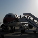 Der Flug sollte nach Mitternacht losgehen, neun Stunden durch die Nacht von Shanghai nach Abu Dhabi. Beim Einsteigen wurden wir beiseite genommen, unsere Namen standen auf einer Liste. Die Etihad-Frau schrieb uns neue Sitzplätze auf unsere Bordkarten, ...