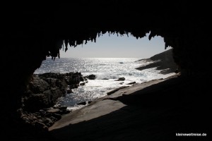 Der Flinders Chase National Park liegt ganz im Osten von Kangaroo Island. In diesem Schutzgebiet tummeln sich ganz besonders viele Kängurus, Koalas und andere Tiere. Wir haben uns den Felsbogen Admirals Arch angeschaut. Er liegt unter eine Klippe, dort wo die Brandung tobt und die Wellen das Gestein aushöhlen. Der Bogen sieht aus wie eine Mischung aus Felsgrotte und Tropfsteinhöhle.