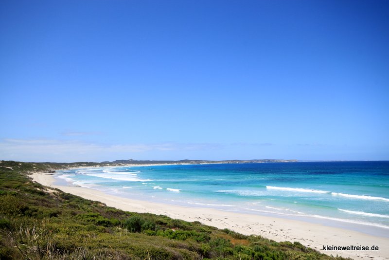 Eine weitere Bucht, die absolut empfehlenswert ist, ist die Vivonne Bay. Das Wasser leuchtet in einem so einzigartigen türkis-blau-schön, so ein Wasser sieht man selten. Obwohl wir auf dieser Reise schon so viele Strände gesehen haben, wurden wir ganz euphorisch. Dazu ein sehr langer heller Sandstrand der sich die Küste entlangzieht. Und als wir da waren, im australischen Frühling, war fast kein Mensch zu sehen. Einfach schön.