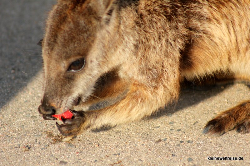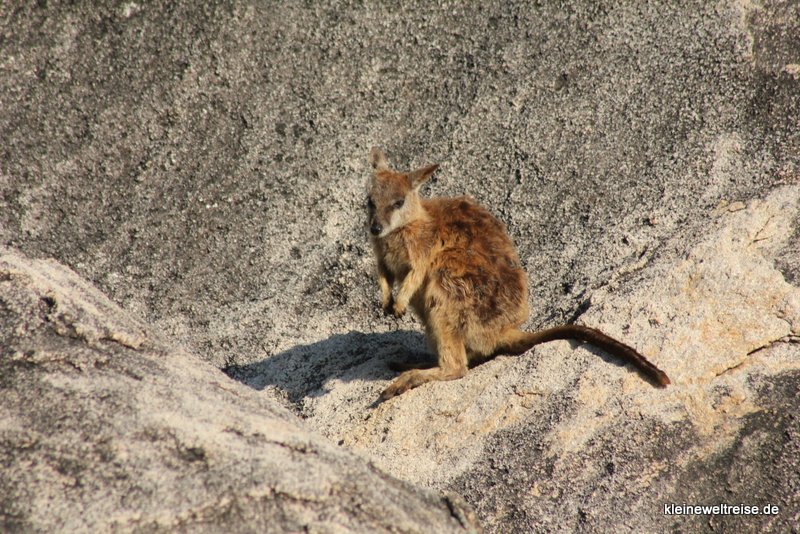 Ausserdem hatte die Tierwelt von Magentic Island einige Highlights für uns parat: An einer Felswand nahe des Meeres haben wir eine ganze Horde Wallabies zum Streicheln nahe gesehen. Ein Wallaby ist eine Art Mini-Känguru das mühelos über Felswände klettern kann. Eine ganze Reihe Leute waren auch der Meinung, es sei eine total super Idee die wilden Tiere zu füttern. Gut finde ich das zwar nicht, hab bei der Gelegenheit dann aber doch das ein oder andere Foto der angelockten Tiere geschossen.