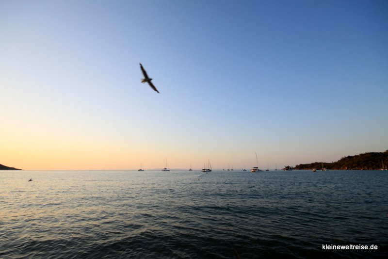 Rund um die Insel gibt es viele kleinere und größere Buchten, die allesamt sehr schnuckelig sind und zum Baden einladen. So waren wir dann auch schwimmen und haben abends in der Horseshoe Bay einen sensationellen Sonnenuntergang erlebt.