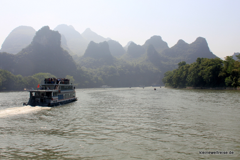 Für Chinesen sind die Karstberge rund um den Li Fluss DER Inbegriff der schönen Landschaft. Die mussten wir unbedingt angucken. Klar, mit einer organisierten Tour mit Bus und Boot, die wird empfohlen, die wird angeboten und ist leicht buchbar. Also ergaben wir uns und ließen uns vom Bus mit aufpreispflichtigem englischsprachigem Guide abholen. „Hallo, ich heiße Daniel. Und das hier neben mir ist der...