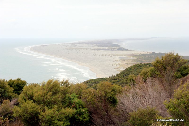 Wir sind zwei von den 70.000. Zwei die obwohl im Navi nicht verzeichnet, den Weg gefunden haben. Zwei die durch Schafherden hindurch über Weiden gestapft sind. Zwei die ihr Wohnmobil über die Schotterstraße gejagt haben. Zwei von 70.000 Menschen die jedes Jahr an diesen abgeschiedenen Zipfel Neuseelands kommen, an dem die Natur wild und alles groß ist: Große Klippen, große Wellen, große Dünen und eine große Sandbank. Wir waren im Norden der Südinsel auf der Puponga Farm, besser bekannt als Cape Farewell.
