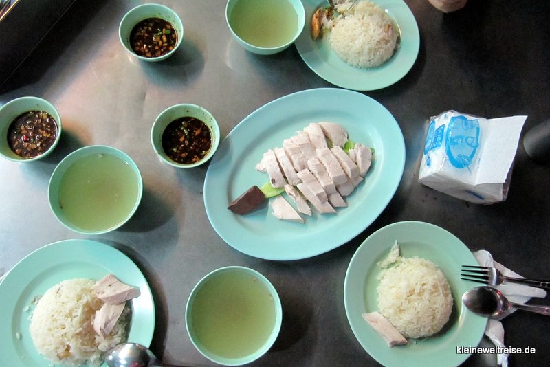 Huhn mit Reis in einer Straßenküche in Bangkok