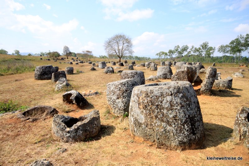 Die riesigen Krüge aus Stein liegen einfach auf der Wiese, mitten im Nirgendwo. In der Nähe der Stadt Phonsavan befindet sich diese Ebene der Tonkrüge. Und kein Mensch weiß, wie diese tonnenschweren Kolosse dorthin gekommen sind und ob sie jemals einen Zweck erfüllten.