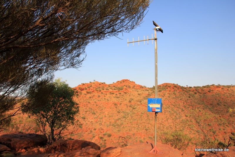 Wir haben uns also früh um 7 Uhr auf den Weg gemacht, zuerst galt es einen steilen Anstieg zu erklimmen, und schon waren wir oben auf der Kante des Canyons. Nach jeder Biegung wurden wir mit neuen tollen Ausblicken belohnt. An einigen Stellen gab es ein Emergency Phone. Das ist eine Notrufsäule mit Solarzelle, falls man Hilfe braucht kann man hier den Park Ranger anfunken (Handynetze sind nämlich im Outback äußerst selten). An anderen Stellen haben wir noch Fossilien gefunden. Genau wie der Ayers Rock und Kata Tjuta war auch hier ganz ganz ganz früher einmal Meeresboden, dessen Spuren man heute noch im Gestein sehen kann.