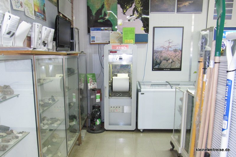 Zu guter Letzt wurden wir am Abend mit dem Fundstück des Tages belohnt. An der Tankstelle in Hawker stand ganz hinten, versteckt in der Ecke des Ladens, ein Seismograph. Hier wird penibel gemessen, ob und wo und wie sich ein Erdbeben ereignet hat. Wir haben uns zur Feier des ausklingenden Tages und des Seismographen ins ausliegende Gästebuch eingetragen und dann ging es ab ins Pub zum Känguruschnitzel essen.