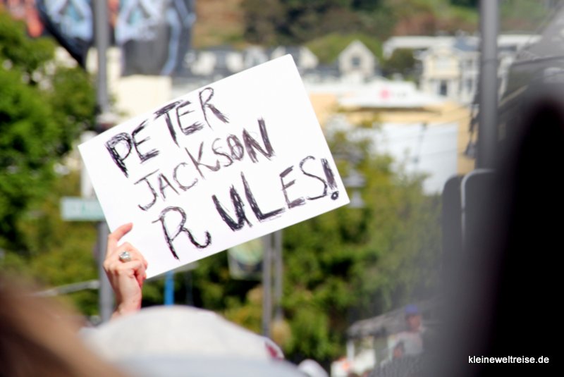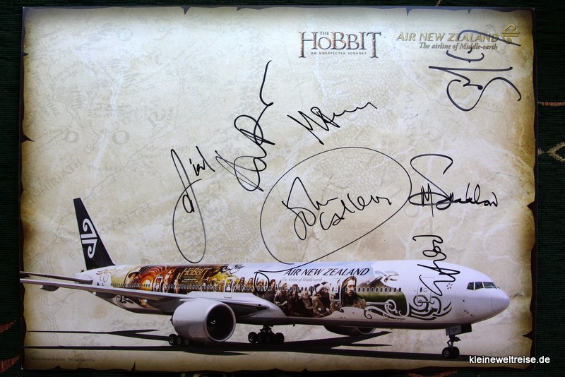 Unsere weitere Ausbeute: Merchandising von Air New Zealand, Fotos von Fanta mit verkleideten Fans und von ein paar Berühmtheiten. Außerdem haben wir gelernt, wie das red-carpet-business läuft. Nicht schlecht, dafür dass wir unvorbereitet waren, oder?! Und das nächste Mal belächeln wir die jungen Mädels am Teppichrand nicht mehr, denn das Erhaschen von Autogrammen bei Filmpremieren braucht Erfahrung und Können.