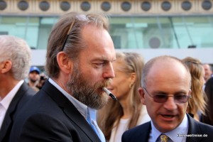 Und dann kommt Hugo Weaving. Ich hab auf ihn gewartet, Elrond und Agent Smith, so ein saucooler Typ. Direkt vor uns nimmt er sich Zeit, Fotos. Als er ansetzt unser Autogramm zu schreiben, wird er angesprochen, von jemand ganz Wichtigem, der ihm jemand noch Wichtigerem vorstellen muss. Hugo ist weg, wir haben haarscharf kein Autogramm bekommen.
