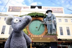 Am Vortag war alles noch ruhig. Vom Embassy Theatre, dem Ort der Filmpremiere, blickte ein großer Gandalf von der Fassade. Im Waitangi Park veranstaltete die Stadt einen kleinen Hobbit-Markt. Alles in allem wirkte Wellington recht normal.