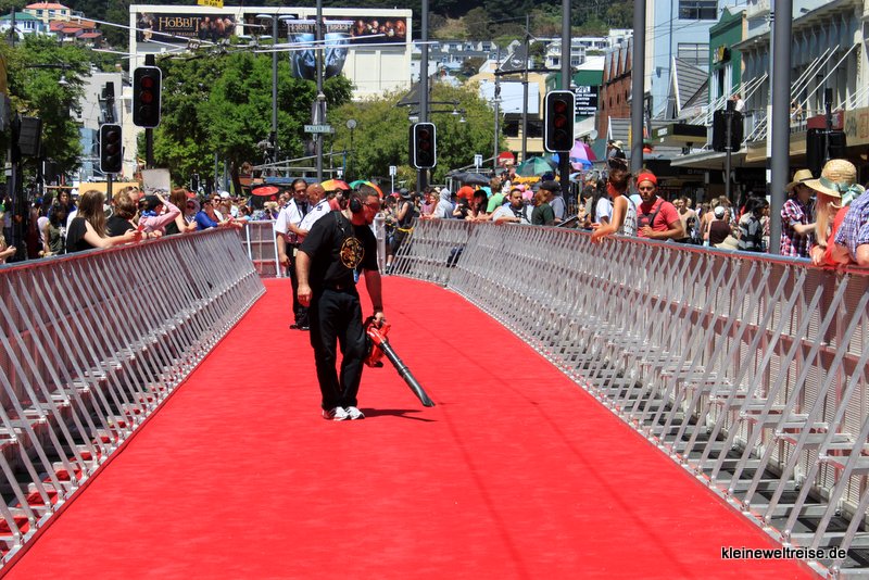 So sind wir am nächsten Mittag sehr unbedarft zum Courtenay Place gefahren. Ohne Equipment, ohne Timing, ohne Vorbereitungen. Man wird merken, wir kannten uns in Sachen roter Teppich überhaupt nicht aus.