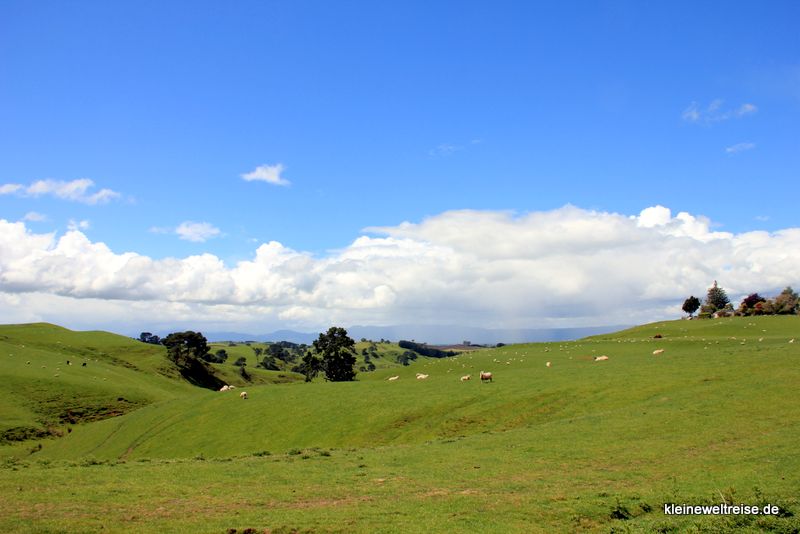 Das Auenland ist die perfekte Idylle, mit seinen grünen Hügeln, einigen Bäumen und Kühen und Schafen die hier grasen. Einfach wuuunderschön. In diese tolle Landschaft, man sagt sie sei im Westen von Mittelerde zu finden, sind wir hineingeraten. Das Dorf der Hobbits ist hier mittendrin.