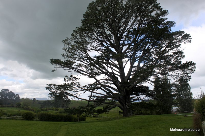 Mitten im Dorf neben dem See steht der große Party-Baum. Hier feiern die Hobbits wenn es was zu feiern gibt. Wie wir hörten, ist an diesen Ort einmal eine als Elfen verkleidete Reisegruppe gekommen. Sie haben eine Stunde um den Party-Baum getanzt. Danach sind sie wieder direkt nach Auckland zum Flughafen gefahren und nach Hause geflogen. Echte Fans haben manchmal nur ein Ziel in Neuseeland.