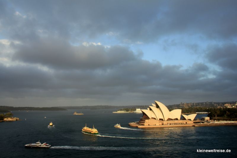 So war unser Programm für den verregneten Samstag ein Besuch der Oper. Die japanische Star-Sopranistin Hiromi Omura sang die Butterfly, es war einfach nur herzzerreißend. Der Saal, das Bühnenbild, alles wirklich top und jeden Ticketdollar wert. Wir Weltreisenden mittendrin, mit unseren Wanderschuhen. Zwischen all den schicken Menschen mussten wir aber nicht zu lange suchen, um die anderen Reisenden zu erkennen: Denn sie trugen ebenfalls Wanderschuhe. In der Pause zwischen den Akten durften wir ins hintere Foyer mit Blick auf Hafen und Harbour Bridge. Da standen wir mit unserem Drink an der Scheibe und hatten mal wieder eine tolle Aussicht. Sydney hat es sehr gut mit uns gemeint, trotz Regen.