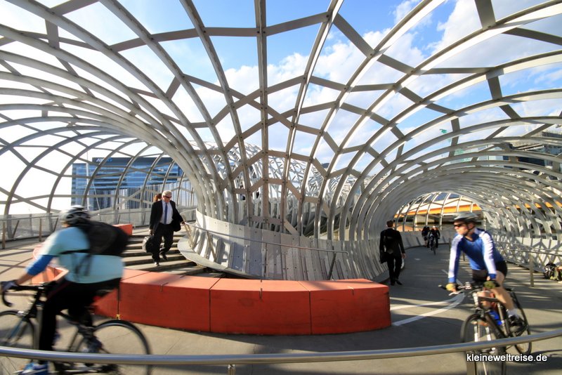Dynamisch und bewegt wirkt dein Bild, wenn du eine Perspektive mit diagonalen oder Fluchtlinien wählst, z.B. nah heran gehst, von oben/ unten oder seitlich fotografierst usw. Ein Trick können auch bewegte Elemente mit Bewegungsunschärfe sein.