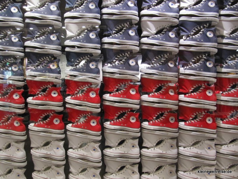 Das Schaufenster voller Chucks war einfach super und wir mussten es fotografieren. Es war in einem Shop im CBD von Melbourne. Jede größere Stadt hatte einen CBD und Shoppingmeilen.