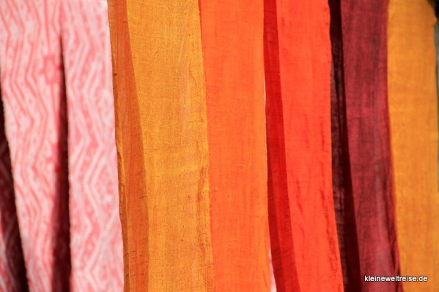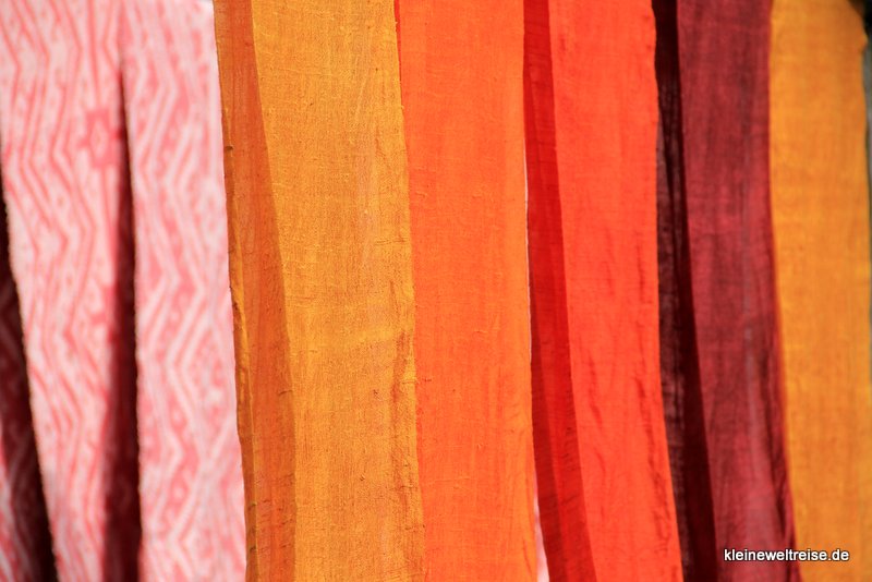 In Laos gibt es viel Seide. Sie wird hier hergestellt und auch verarbeitet. In Luang Prabang haben wie die Seidenraupen bei der Arbeit beobachten können und gesehen wie tolle Stoffe gewebt oder gefärbt werden. Auf Nachtmärkten haben wir die fertigen Tücher dann wiedergefunden.