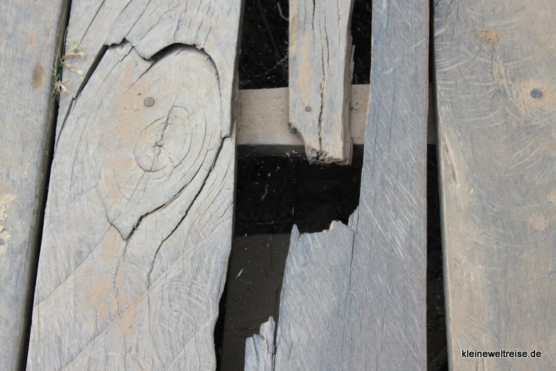 Ab und zu mussten wir über Brücken, mit dem Fahrrad, zu Fuß oder mit dem Bus. Die Meisten waren aus Holz und gerne mit Lücken. Das scheint hier so eine Gesetzmäßigkeit zu sein. Manchmal hat es etwas geschwankt (z.B. auf der Bambusbrücke vor der Kong Lor Cave oder der Hängebrücke in Vang Vieng). Aber wir sind immer gut und trocken auf der anderen Seite angekommen.