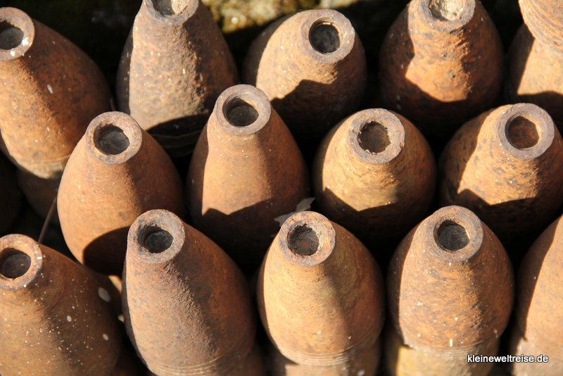 Ebenfalls in Phonsavan haben wir die Überreste der amerikanischen Bomben gesehen. Oft waren sie gestapelt und dekorativ in Reisebüros oder vor Hotels ausgestellt.