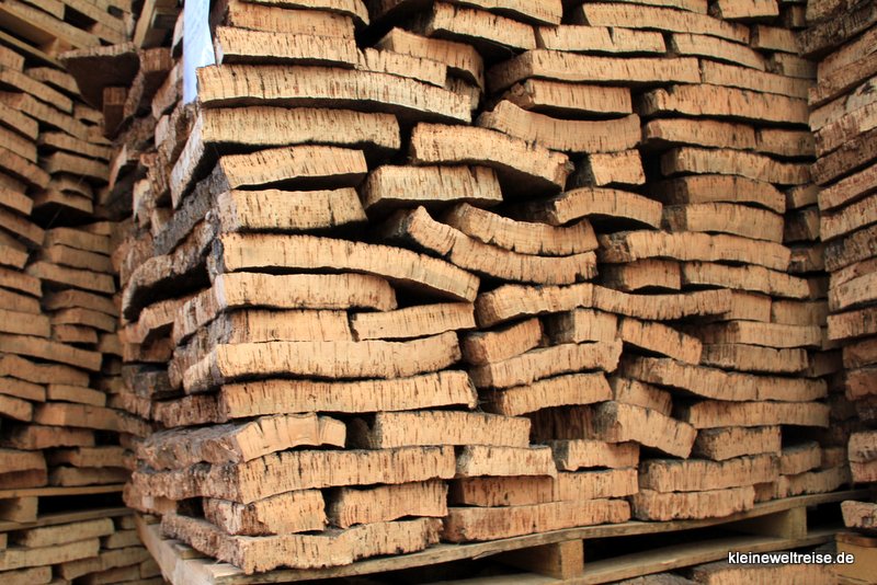 Apropos Korkeiche, der Kork gehört in Portugal einfach dazu, sei es an den Bäumen, als Korken in Weinflaschen oder als Touristensouvenir: Taschen, Schmuck, Bodenbelag, alles Mögliche wird aus Kork gemacht.