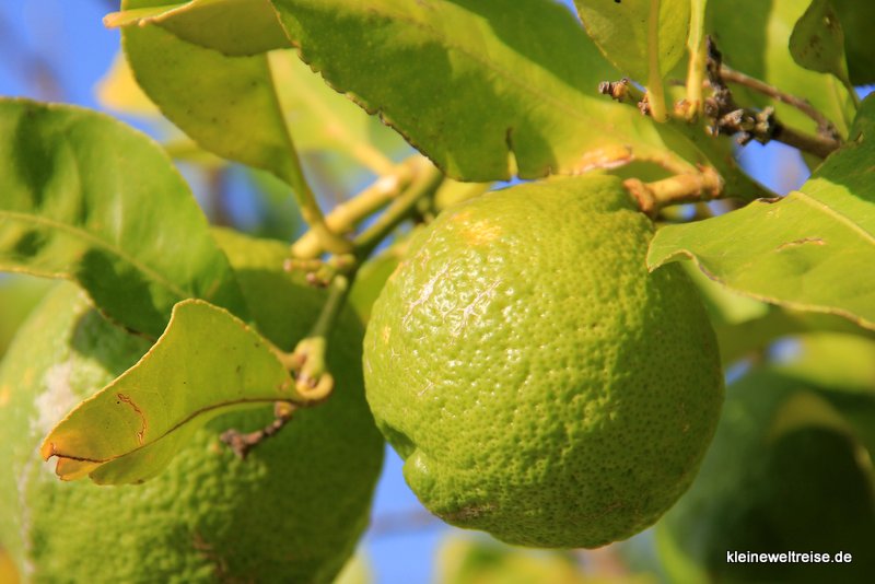 Ab und zu findet man einen Limettenbaum oder ein anderes Obst in der kargen Landschaft. Wie Farbtupfer heben sie sich hervor.