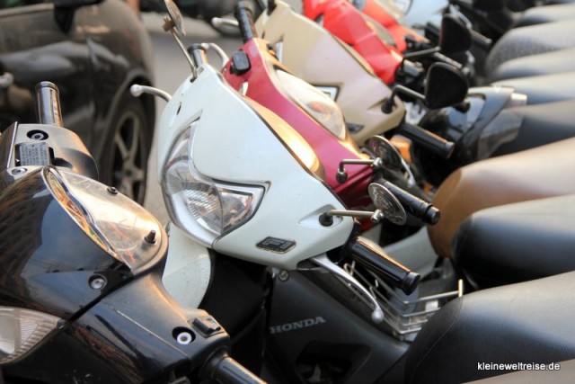 Überhaupt, die Mopeds sind überall. Nicht nur auf der Straße. Sondern auch und vor allem auf Gehwegen, wo sie geparkt werden. Und in den Häusern, praktisch jedes Haus hat eine Rampe. Man parkt nämlich sein Moped im Wohnzimmer, mangels Garage.