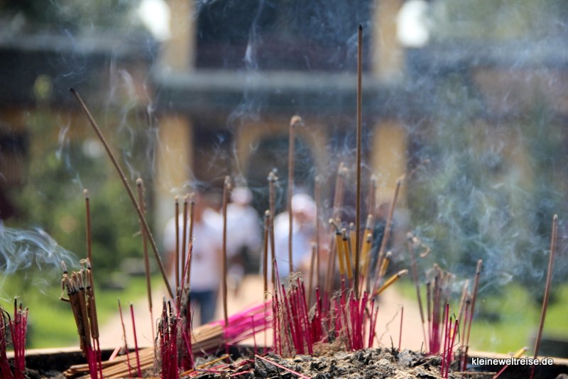 In Pagoden und Tempeln rauchen die Räucherstäbchen was das Zeug hält. Praktisch jedes Haus hat einen eigenen Altar, auch hier kommen gern und oft Räucherstäbchen zum Einsatz. Ihr Geruch und ihr Qualm gehören zum Pagoden- oder Tempelbesuch unbedingt dazu, wie z.B. in Hue oder dem Marmorberg.