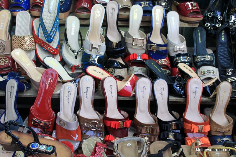 Shopping und Mode sind auch bei jungen Vietnamesen beliebt. So zielten viele der Geschäfte gar nicht nur auf Touristen als Kunden, sondern auf die heimische Kundschaft. Denn mit steigendem Wohlstand steigt der Konsum. Und in Vietnam scheint modische Kleidung wichtig zu sein, wie man unschwer an den Regalen des Schuhgeschäfts sieht.