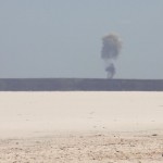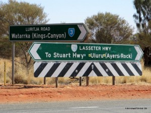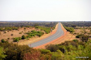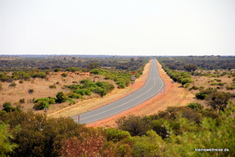 Der lange schnurgerade Stuart Highway hat an einigen Stellen noch eine weitere Funktion: Er dient als Landebahn für den Royal Flying Doctor Service of Australia. An diesen Stellen sind extra Markierungen für die Landung angebracht. The Flying Doctors gewährleistet in kaum besiedelten Gegenden die ärztliche Hilfe: Innerhalb von zwei Stunden kommt der Arzt per Flugzeug überallhin in ganz Australien. Fanta sucht an der Hilfslandebahn den ganzen Himmel nach Flugzeugen ab. Er bietet sich auch gleich an, für ein Foto eine Landung mitten auf der Straße zu demonstrieren. Als das Foto geknipst ist, muss er schnell beiseite springen, weil ein Road Train in voller Fahrt ankommt.