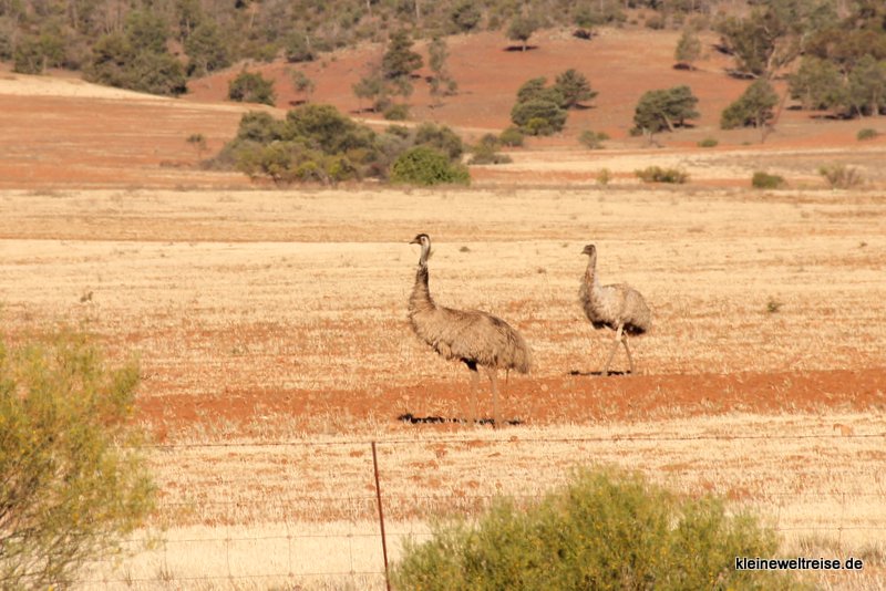 Je weiter wir in Richtung Süden kommen, desto höher wachsen die Büsche und Bäume und desto mehr Tiere sehen wir. Als wir frühmorgens durch das südliche South Australia fahren, sehen wir Unmengen von Kängurus, Wallabies und Emus neben der Straße, der dort zum grasen unterwegs sind. Und auch die überfahrenen Tiere am Straßenrand nehmen zu…