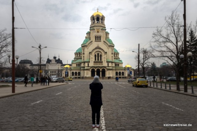 Natürlich zeigt uns Yana noch die Kirchen von Sofia. Die (orthodoxe) Kathedrale Sweta Nedelja, die 1925 von den Kommunisten gesprengt wurde um den König zu töten (er überlebte, aber 120 andere Menschen starben) und die in direkter Nachbarschaft einer Moschee, der katholischen Kirche und einer Synagoge liegt. „Unser Quadrat der Toleranz – alle Religionen einen Steinwurf voneinander entfernt, aber sie werfen niemals Steine nach den Anderen, so wie es sein sollte“