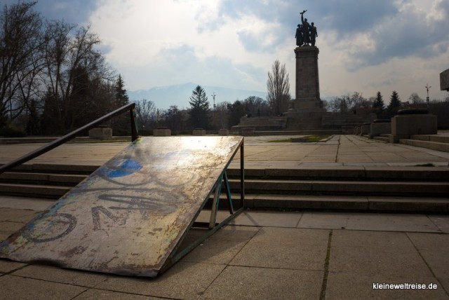 Ein wirklich schönes Beispiel, wie sich die Menschen von Sofia ihre Stadt zurückerobern ist das alte Denkmal zu Ehren der Sowjetarmee anlässlich der „Befreiung“ Bulgariens (die offen gesagt keine „Befreiung“ war). Heute sind hier Rampen installiert für Skater, und anstatt zu „gedenken“ fetzen die Jungs mit ihren Skateboards über die Anlage.