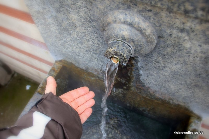 „Die hier gab es schon immer, hier herum wurde die Stadt gebaut!“ Yana zeigt auf die heiße Quelle vor uns, sie liegt mitten in der Stadt! Wo gibt’s das sonst noch?! An mehreren Becken füllen Rentner das heiße kostenlose Mineralwasser in 5-Liter-Kanister aus Plastik. „Ihr könnt es trinken,“ ruft Yana „Probiert mal!“ Das Wasser ist wirklich sehr heiß für meine kalte Hand und schmeckt ganz gut. Eine wundersame Wirkung hat es zu meiner Enttäuschung leider nicht gehabt – vielleicht muss ich beim nächsten Mal einfach fester daran glauben.
