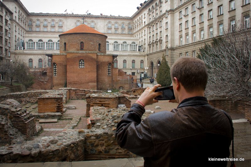 Und überall in der Innenstadt finden sich noch die Spuren der tausende Jahre alten Stadtgeschichte: Im U-Bahnhof sind unter die Erde die Reste der alten Stadtmauer zu sehen. Im Hof des Präsidentenpalastes eingemauert steht die St. Georgs Rotunde aus dem 4. Jahrhundert, das älteste Gebäude Sofias mit Dach. Und im Kellergewölbe der Kirche Sweta Sofia sind noch alte Grundmauern und Steingräber zu sehen. Beim Bau der U-Bahnlinien wurden so viele archäologische Funde gemacht, dass man für eine Linie 15 Jahre brauchte.