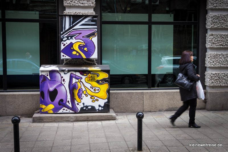 In Sofia fällt mir sofort auf, dass es bunt ist. So ziemlich jeder Stromkasten ist bemalt, jeder von einem anderen Künstler. Vor ein paar Jahren beschloss man so die Stadt farbiger zu machen und es hat geklappt. Ich lasse mich durch Sofia treiben und stolper von Kunstwerk zu Kunstwerk.