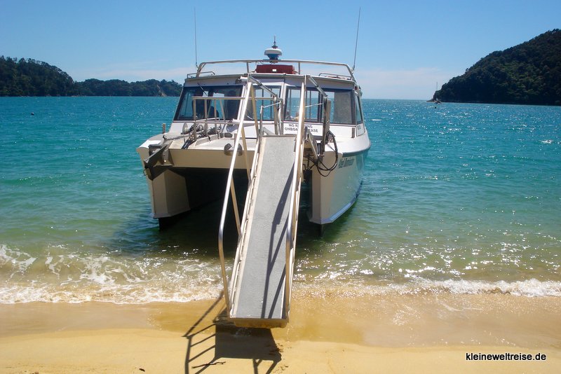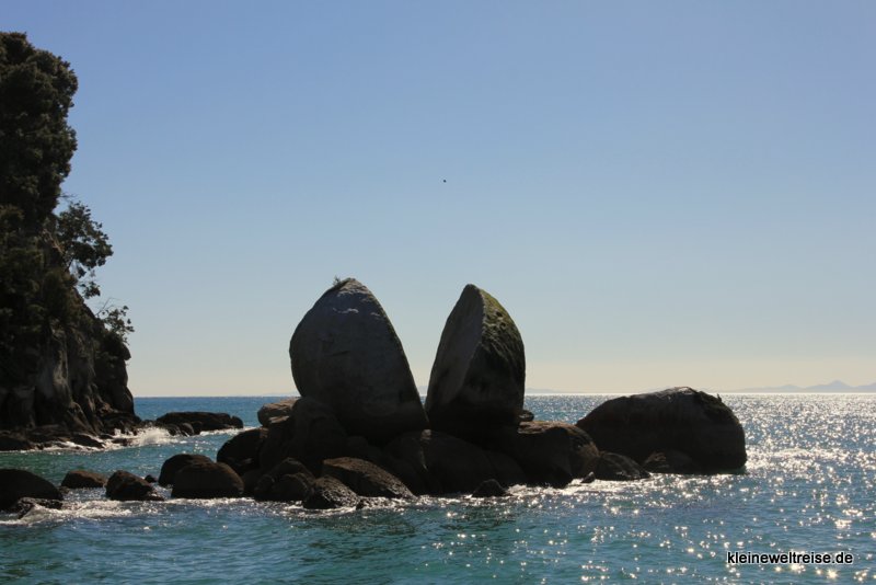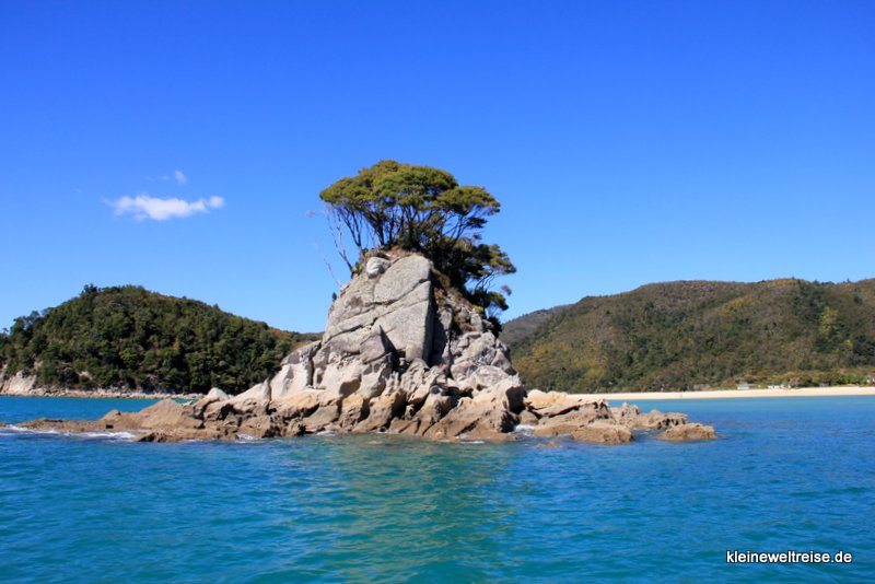 Am Morgen nahmen wir uns ein Taxi in den Abel Tasman Nationalpark. Ein Wassertaxi. Man kommt nämlich nur zu Fuß oder eben per Boot hier hin. Wir wollten zuerst einmal die Küste mit den vielen Buchten, Stränden und Granitfelsen entlang schippern. Danach sollten wir in der Anchorage Bucht ausgesetzt werden, um dort etwas Zeit verbringen zu können.