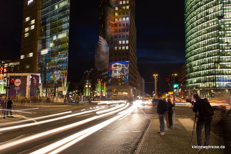 Die Idee ist richtig gut: Berlin nachts anders aussehen zu lassen und Farbe in die sonst dunkle Nacht zu bringen. Zum Festival of Lights im Oktober 2013 wurden richtig viele Gebäude in Berlin farbig beleuchtet. Viele sind extra nach Berlin gereist um sich das anzugucken. In dieser Nacht (ein Montag!) sind wirklich viele Menschen auf den Straßen unterwegs, jeder hat seinen Fotoapparat dabei. Und...