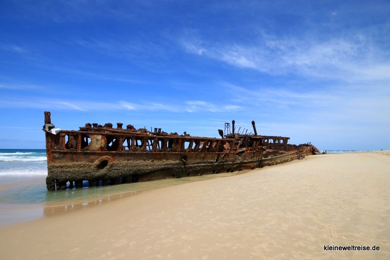 Der frühe Vogel fängt den Wurm: Um sieben Uhr in der Früh holte uns unser Shuttle zur Fähre ab. Die Sonne war gerade erst am Aufgehen, es war noch kühl und die Papageien machten einen Lärm in den Bäumen. So starteten wir verpennt in Richtung Fraser Island. Fraser ist die größte Sandbank der Welt, 124 Kilometer lang. Auf einer dünnen Humusschicht wachsen Bäume zu...