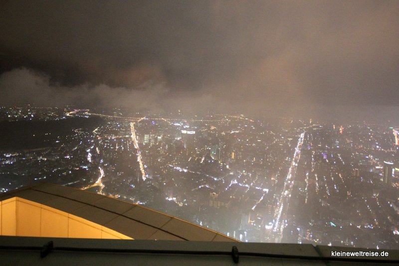 Passenderweise war der Audioguide im Preis enthalten. Auf thüringisch wurde uns der Taipei 101, die Aussicht und die Technik des Stoßdämpfers (dämpft die Kraft der Erdbeben) beschrieben, während unter uns langsam die Lichter der Stadt angingen.