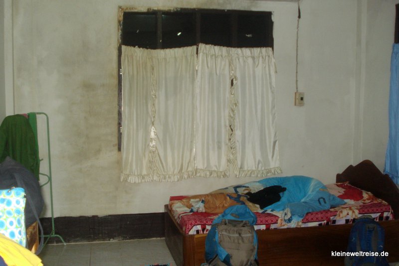 Ein Minibus brachte uns in eine Unterkunft, nicht weit von der Grenze entfernt im Dorf Muang Ngeun. Wir sollten jetzt merken, wie neu sowohl Tour als auch Grenzübergang waren: Unsere Unterkunft war das Gruseligste, was wir bisher auf Reisen erlebt hatten. Und da alles neu war, schien es im Ort keine Alternativen zu geben. Eine große Zahl an Hotels und Guesthouses konnten in der kurzen Zeit, in der westliche Touristen her kommen, einfach noch nicht eröffnen.
