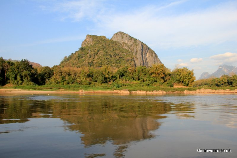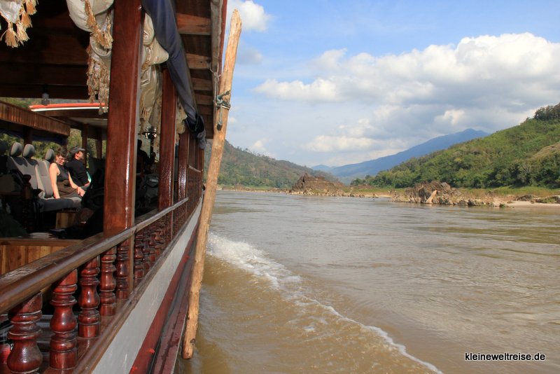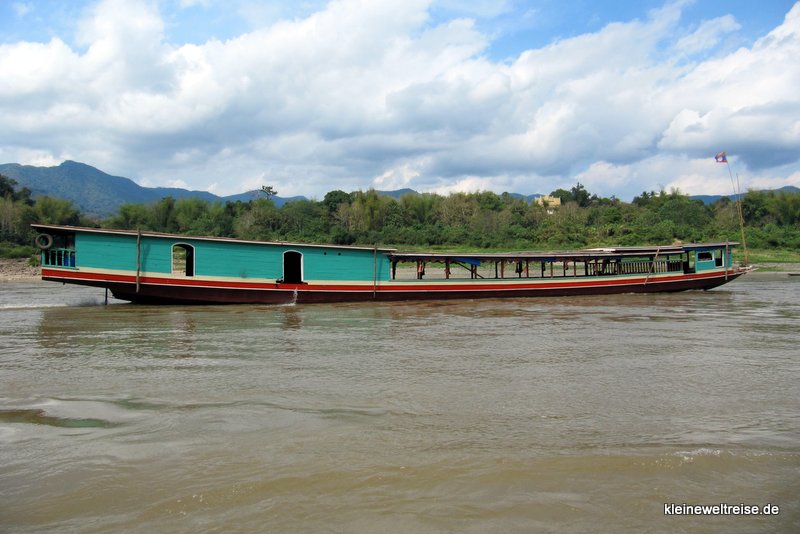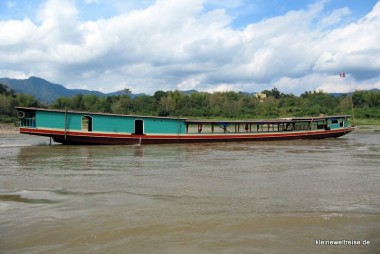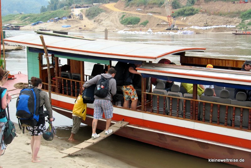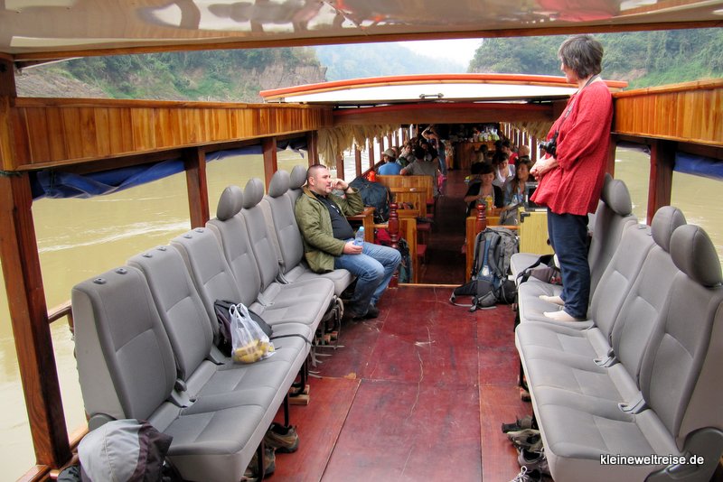 Wir haben diese Tour über den Grenzübergang Huay Kon – Muang Ngeun ausgesucht, weil sie in nur zwei Tagen von Chiang Mai (Thailand) nach Luang Prabang (Laos) führt. Denn die bisher populäre Route über Huay Xai hätte einen ganzen Tag länger gedauert. Unser Boot war das Pak Can Boat, ein VIP Slow Boat mit nur 50 Plätzen. Das ist viel komfortabler als die Linienboote auf dieser Strecke, denn die nehmen oft 100 und mehr Leute an Bord bzw. überladen auch.