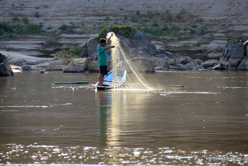 Zum Guesthouse gehörte eine Art Restaurant, wo wir unsere Mitreisenden trafen. Da die kleine Speisekarte auf Laotisch geschrieben war, gingen wir einfach in die Küche und zeigten auf die Dinge, die wir essen wollten. Die Küche war eher eine sehr „lokale“ Kochstelle mit offenem Feuer, die Oma, die Mutter und die Tochter standen hier und werkelten. Unsere Wahl fiel auf eine Suppe mit selbstgemachten Nudeln. Hauptsache alles war gut erhitzt.